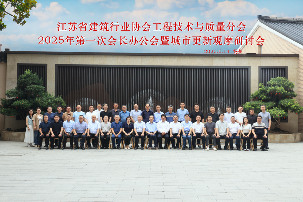 揚(yáng)建網(wǎng)訊 6月14日,江蘇省建筑行業(yè)協(xié)會工程技術(shù)與質(zhì)量分會2025年第一次會長辦公會暨城市更新觀摩研討會在揚(yáng)州召開。會議由江蘇省建筑行業(yè)協(xié)會工程技術(shù)與質(zhì)量分會會長、揚(yáng)建集團(tuán)總經(jīng)理鄒厚存主持,江蘇省建筑行業(yè)協(xié)會會長耿裕華、副會長兼秘書長孫忠建,江蘇省建筑行業(yè)協(xié)會副會長、揚(yáng)州建工控股集團(tuán)黨委書記、董事長王宏,江蘇省建筑行業(yè)協(xié)會副秘書長殷會玲、徐金保,以及分會副會長單位代表、專業(yè)委員會委員等參加。
