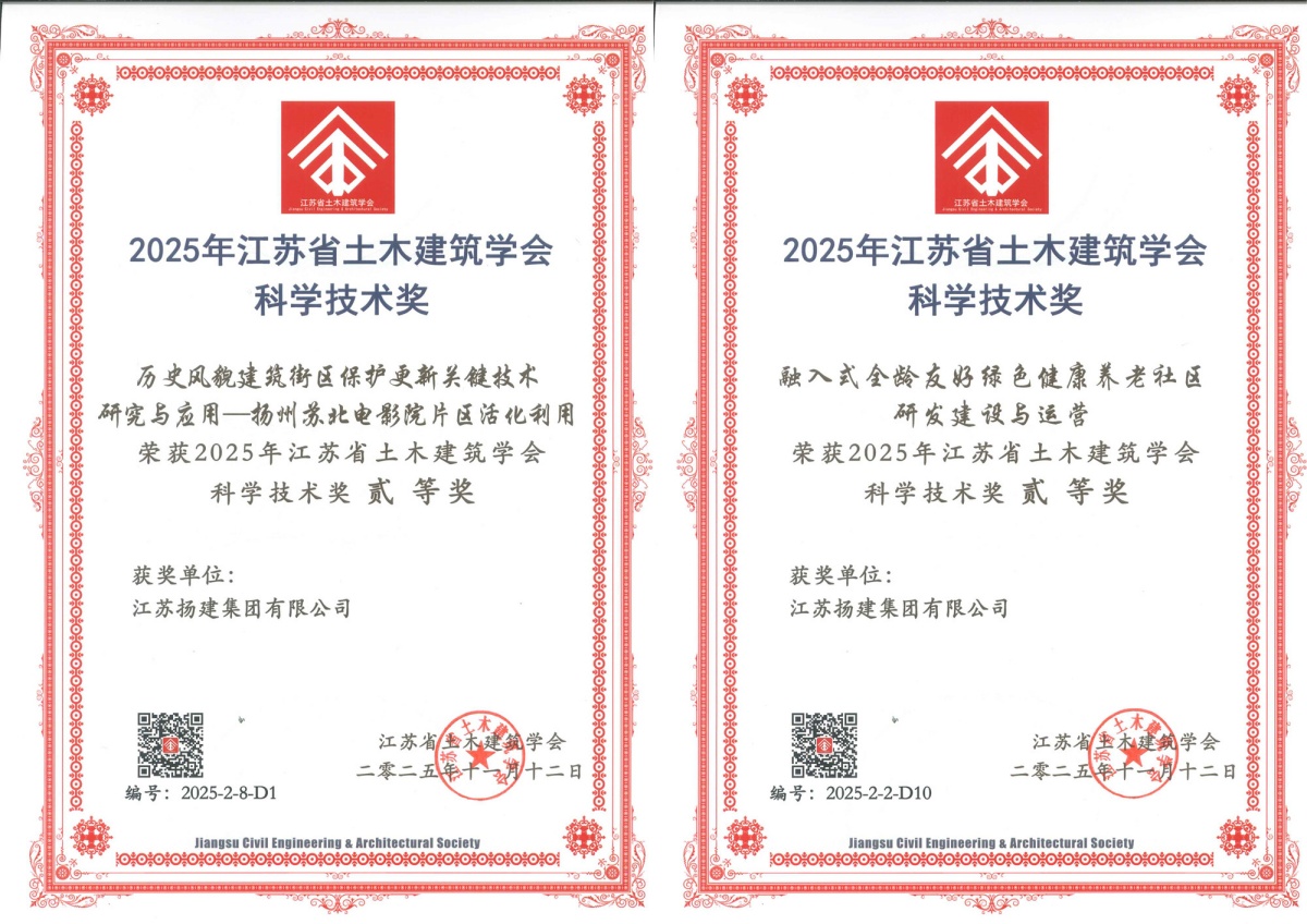 揚(yáng)建網(wǎng)訊 近日,集團(tuán)科技創(chuàng)新領(lǐng)域再獲殊榮。在江蘇省土木建筑學(xué)會第十一屆理事會第五次會上,由集團(tuán)技術(shù)部牽頭,聯(lián)合項(xiàng)目管理一公司、市政工程分公司、機(jī)電安裝分公司、揚(yáng)州廣陵建工有限公司、江蘇華發(fā)裝飾有限公司共同完成的“歷史風(fēng)貌建筑街區(qū)保護(hù)更新關(guān)鍵技術(shù)研究與應(yīng)用——揚(yáng)州蘇北電影院片區(qū)活化利用”成果獲得表彰,被評定為“2025年江蘇省土木建筑學(xué)會科學(xué)技術(shù)獎”二等獎。