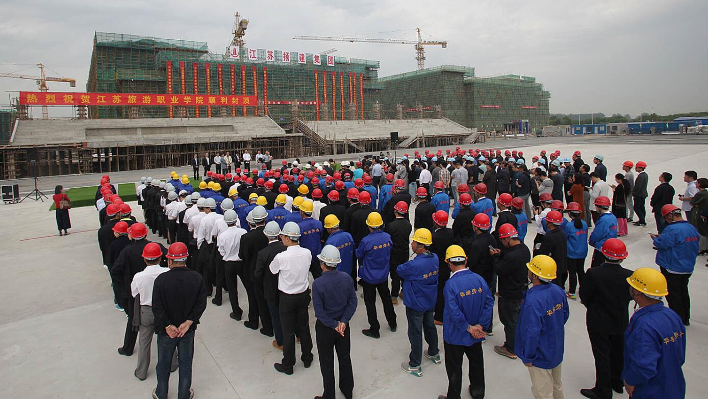 當(dāng)天上午9點(diǎn)18分,簡樸又不失隆重的封頂儀式在學(xué)院主體育場舉行,開發(fā)區(qū)管委會副主任丁曉東、城鄉(xiāng)建設(shè)局局長張長海、財(cái)政局局長徐軍、揚(yáng)州國土局開發(fā)區(qū)分局局長徐兵、揚(yáng)州商務(wù)高等職業(yè)學(xué)院院長周俊、我集團(tuán)董事長曹德榮、SPV公司董事長沈國仁、集團(tuán)董事鄒厚存、康往東、耿杰、副總陳寶中等相關(guān)領(lǐng)導(dǎo)出席。封頂儀式由SPV公司董事長沈國仁主持,監(jiān)理、審計(jì)及各參建單位300余人組建方陣參加。