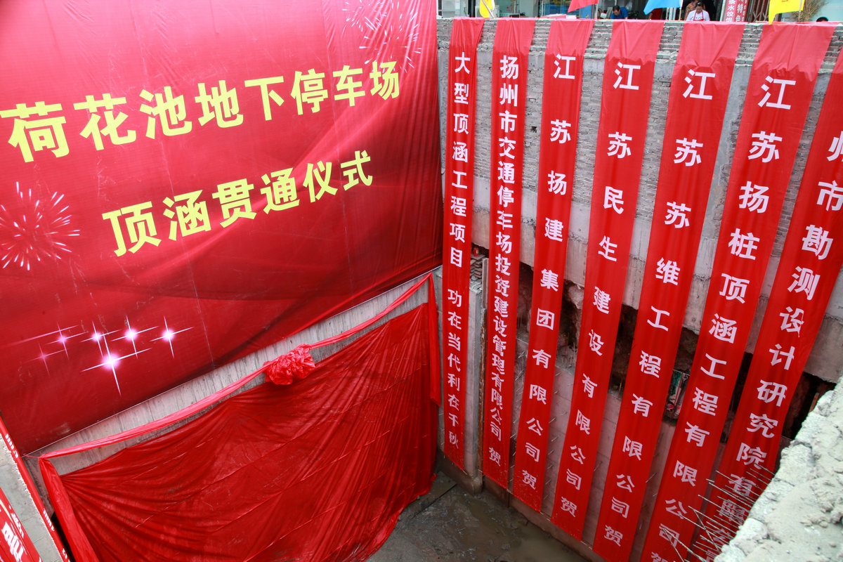 揚(yáng)州荷花池地下停車場開創(chuàng)性地利用了湖下空間建設(shè)停車場,極大地緩解了周邊地區(qū)的交通擁堵狀況,是市委市政府明確的重要民生工程。我集團(tuán)為該工程總承包單位,二公司朱政項目部具體負(fù)責(zé);而該地下停車場北側(cè)聯(lián)通道由我集團(tuán)旗下?lián)P州市樁基有限公司進(jìn)行專業(yè)施工,樁基公司年輕項目經(jīng)理劉正平具體負(fù)責(zé)。