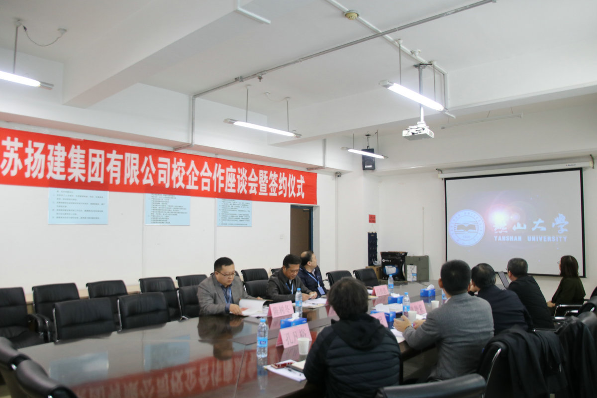 座談過程中,雙方首先觀看了各自的宣傳片,增進了相互了解。隨后,燕大張?zhí)庨L介紹該校簡要校史、發(fā)展概況和畢業(yè)生就業(yè)情況;我集團曹董事長介紹了揚建的發(fā)展概況和人才需求情況;許世明董事就近年來揚建集團引進、培養(yǎng)和使用的燕山大學(xué)優(yōu)秀畢業(yè)生情況作了介紹。最后,他們代表校企雙方正式簽署了《燕山大學(xué)-江蘇揚建集團有限公司校企合作協(xié)議》。根據(jù)該協(xié)議,我集團將在燕大設(shè)立優(yōu)秀生源基地,燕大將在我集團設(shè)立畢業(yè)生就業(yè)基地;雙方定期聯(lián)系,建立人才供需信息互動機制;不定期互訪,雙方在人才培養(yǎng)與就業(yè)、在職骨干深造、教學(xué)改革、專業(yè)設(shè)置、產(chǎn)學(xué)研合作、互派導(dǎo)師或顧問等方面更好互動、深入合作。