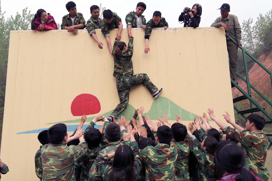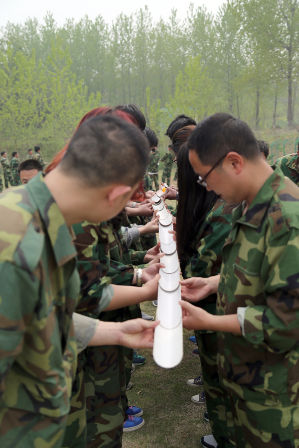 緊接著用一天的時(shí)間進(jìn)行了《瘋狂市場》、《鼓動(dòng)人心》、《急速前進(jìn)》、《穿越電網(wǎng)》和《畢業(yè)墻》等項(xiàng)目,每一個(gè)項(xiàng)目都將團(tuán)隊(duì)的團(tuán)結(jié)合作、內(nèi)部溝通和集體榮譽(yù)體現(xiàn)的淋漓盡致,每一個(gè)項(xiàng)目都強(qiáng)調(diào)隊(duì)員之間的分工合作、計(jì)劃和執(zhí)行的完美結(jié)合,每一個(gè)項(xiàng)目都體現(xiàn)了個(gè)人自我與團(tuán)隊(duì)集體的適應(yīng)和再適應(yīng)的必要過程。尤其是在《畢業(yè)墻》項(xiàng)目的實(shí)施過程中,將隊(duì)員之間密切合作克服困難的團(tuán)隊(duì)精神發(fā)揮到了極致,每個(gè)人都是積極為集體榮譽(yù)而戰(zhàn),經(jīng)過大家的密切配合,41名隊(duì)友全部翻越高4.2米的畢業(yè)墻,圓滿完成拓展訓(xùn)練,體驗(yàn)到了勝利喜悅和團(tuán)隊(duì)榮譽(yù)感。