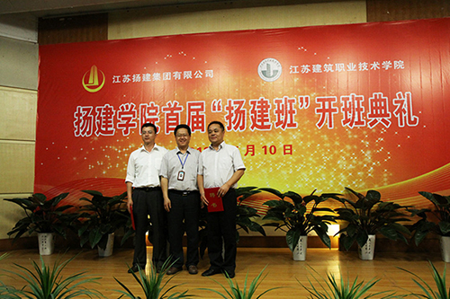 2011年11月10日,集團(tuán)舉辦與江蘇建筑職業(yè)技術(shù)學(xué)院校企聯(lián)合辦學(xué)儀式,與建院簽訂“揚(yáng)建集團(tuán)——江蘇建院”校企合作辦學(xué)協(xié)議,設(shè)立“揚(yáng)建學(xué)院—揚(yáng)建班”, 實施“訂單式”人才培養(yǎng),向集團(tuán)輸入所需應(yīng)用型專門人才,建立長期的人力資源供需協(xié)作關(guān)系。通過“揚(yáng)建班”的定向培養(yǎng),不斷擴(kuò)大企業(yè)的影響力,吸引各院校更多品學(xué)兼優(yōu)的畢業(yè)生加盟揚(yáng)建集團(tuán),為“打造百年揚(yáng)建、實現(xiàn)百億揚(yáng)建”的共同事業(yè)奉獻(xiàn)大家的青春、智慧和汗水。