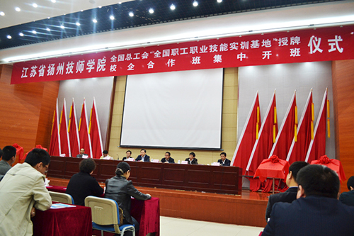2014年3月集團(tuán)與江蘇省揚(yáng)州技師學(xué)院合作建立實訓(xùn)基地,共同培養(yǎng)集團(tuán)所需的高技能實用型人才,并計劃在人才培養(yǎng)、職工培訓(xùn)、產(chǎn)學(xué)研結(jié)合等方面開展多形式、多渠道的有效合作。